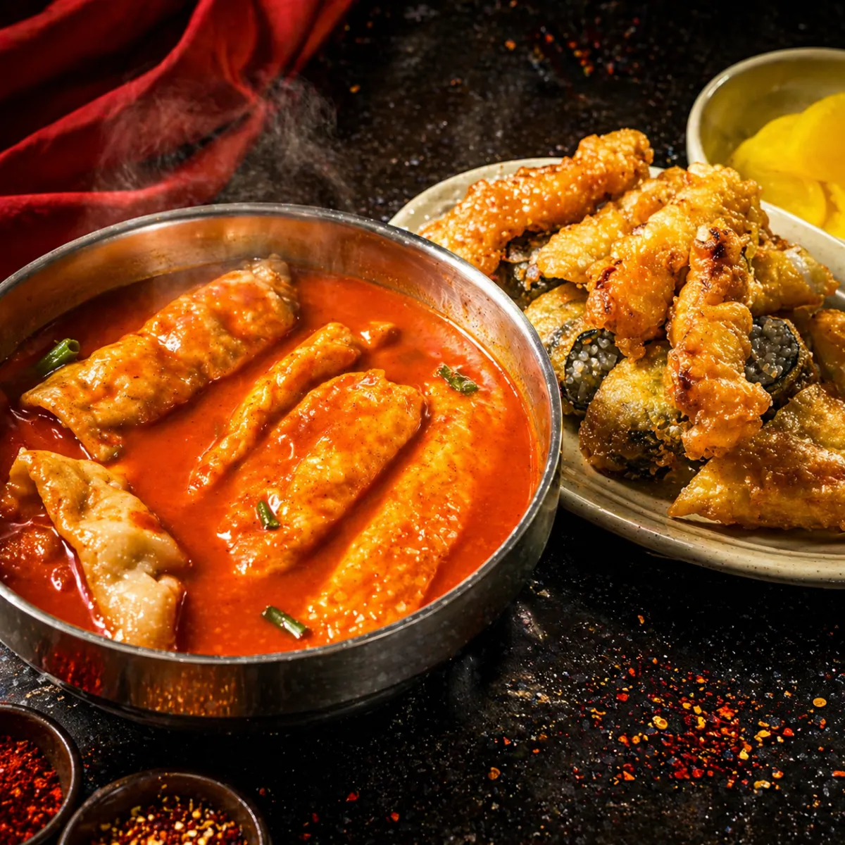 提供された料理の写真をプレミアムな韓国料理の広告画像に変換してください。テキストは不要です。コピーも不要です。文字は一切不要です。