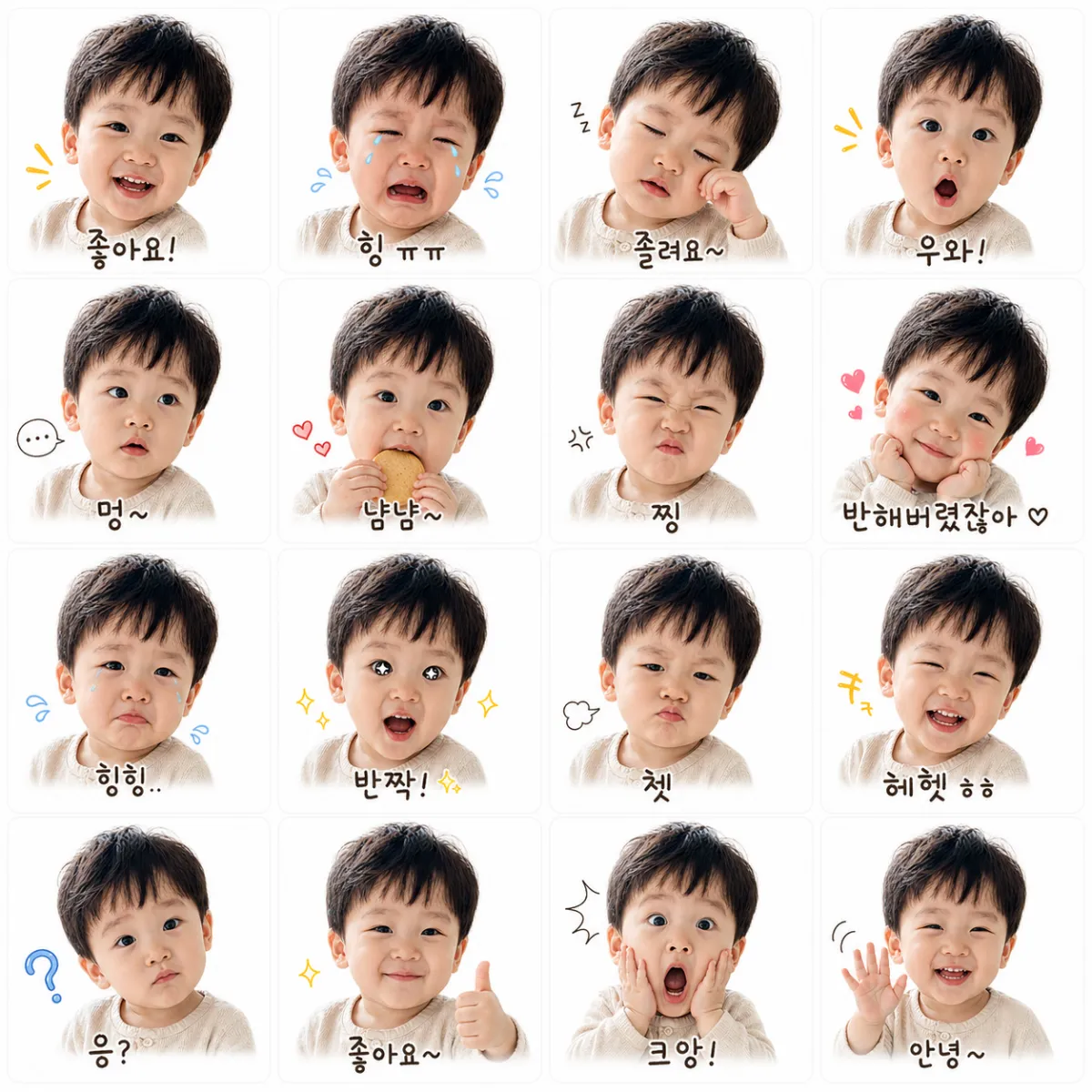 根据上传的婴儿照片,创建一个 KakaoTalk 表情符号风格的贴纸图像。